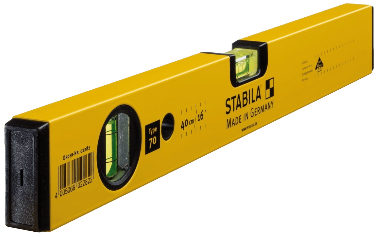Type 70은 일상적인 작업에 적합한 경제적인 수평계입니다. 가볍고 내구성 있는 알루미늄 프로파일로 제작되어 DIY 작업과 가벼운 전문 작업에 이상적입니다. 정확한 측정을 위한 수평 및 수직 기포관을 갖추고 있으며, STABILA의 고정 기포관 시스템은 장기적인 정확도를 보장합니다.